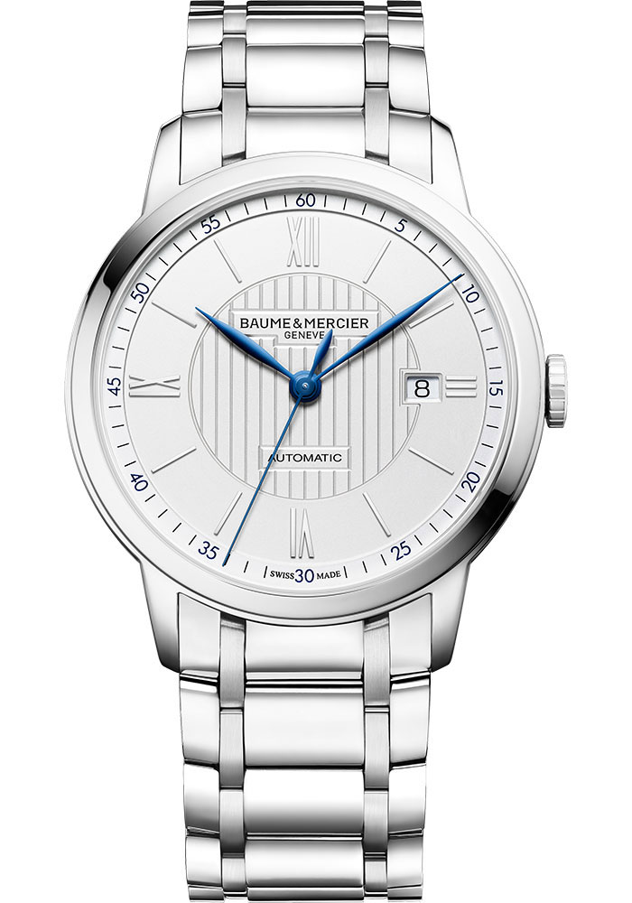 42 mm steel case, 9.03 mm thick, sapphire crystal back, opaline silver-colored dial, Sellita SW200 self-winding automatic movement with date, approximately 38 hours of power reserve, polished and satin-finished steel bracelet. Water resistant to 5 ATM (approx. 50 m).