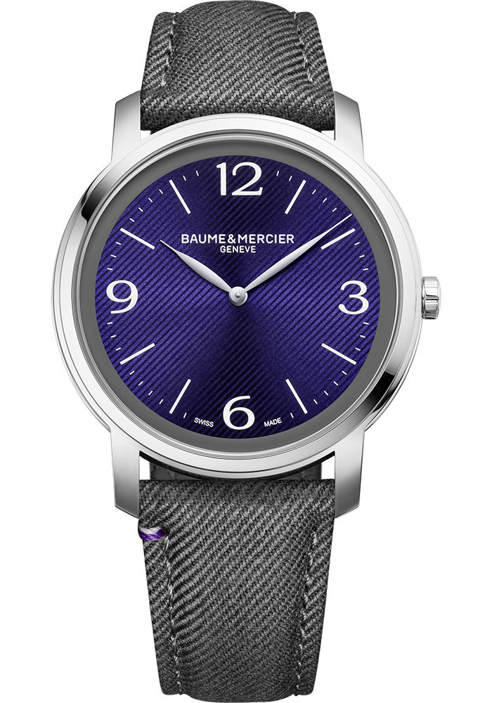 42mm polished steel case, 6.0 mm thick, violet sun satin dial, BM 11105 quartz movement, american alligator leather strap, ardillon buckle. Water resistant to 30 meters.