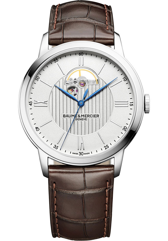 42 mm polished steel case, 9.03 mm thick, opaline silver-colored dial, Sellita SW200 BV self-winding automatic movement, approximately 38 hours of power reserve, dark brown alligator strap, adjustable triple folding buckle with security push-pieces. Water resistant to 5 ATM (approx. 50 m).