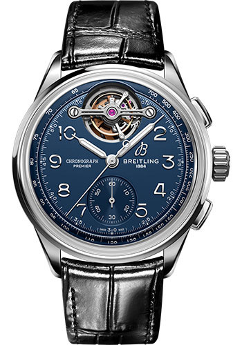 Breitling Premier B21 Chronograph Tourbillon Willy Breitling Watch - 42mm Platinum Case - Blue Dial - Black Alligator Strap - Folding Buckle