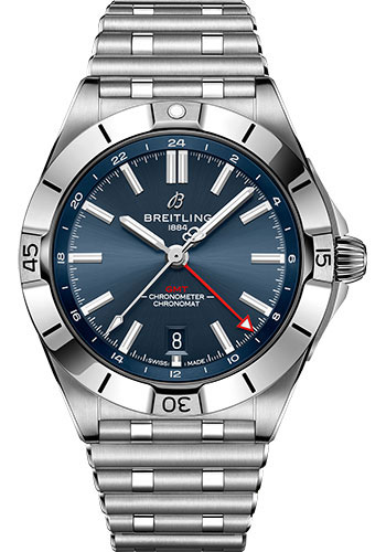 40.0 mm stainless steel case, 11.77 mm mm thick, screw-locked crown with two gaskets, unidirectional ratcheted rotating bezel, cambered sapphire crystal with glareproof treatment on both sides, blue dial, Breitling 32 self-winding movement, approximately 42 hours of power reserve, stainless steel bracelet. Water resistant to 200 m (660 ft).