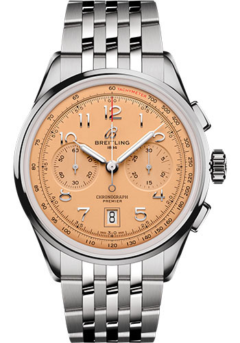 42.0 mm stainless steel case, 13.6 mm mm thick, transparent sapphire crystal back, non screw-locked crown with two gaskets, fixed bezel, cambered sapphire crystal with glareproof treatment on both sides, copper dial, Breitling 01 (Manufacture) self-winding movement, approximately 70 hrs of power reserve, stainless steel bracelet. Water resistant to 10 bars.