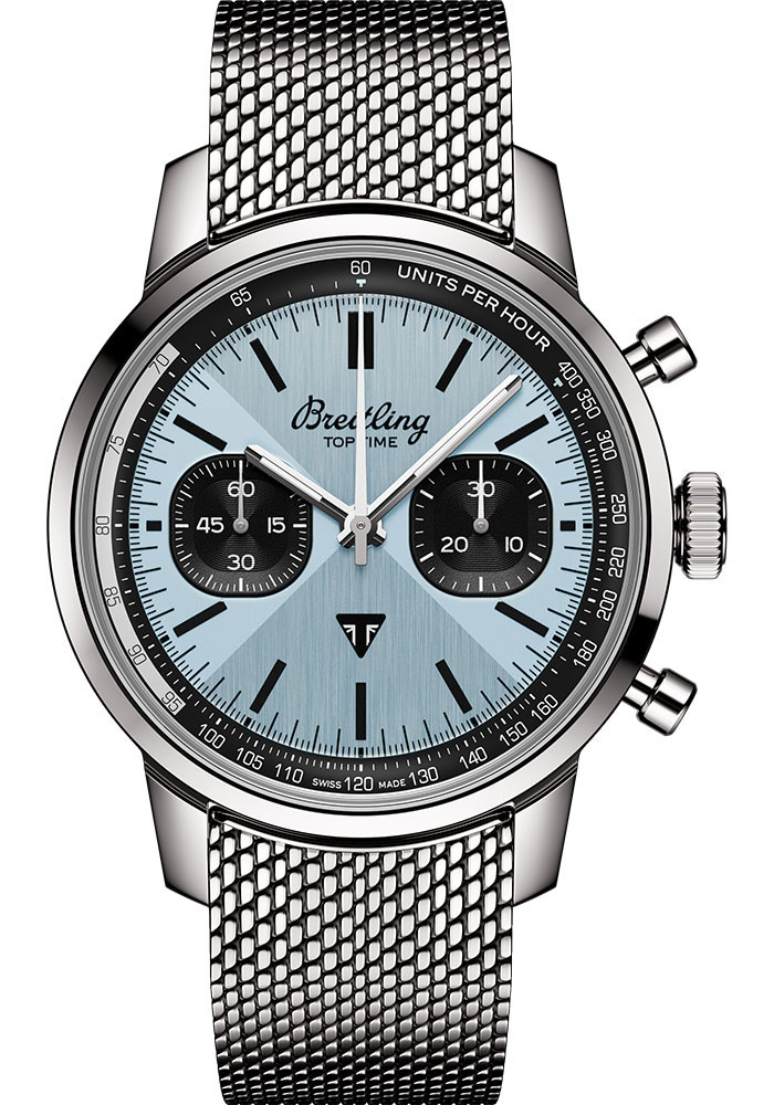 41.0 mm stainless steel case, 13.3 mm thick, non screw-locked crown with two gaskets, fixed bezel, ice blue dial, Breitling 01 (Manufacture) self-winding movement, approximately 70 hrs of power reserve, stainless steel bracelet. Water resistant to 10 bars.
