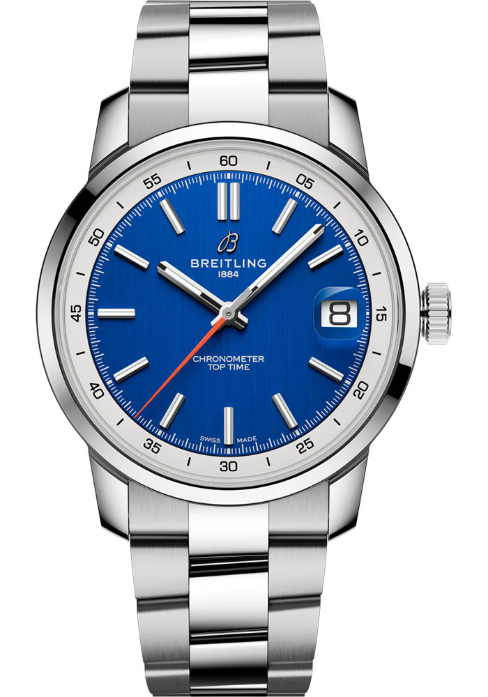 38 mm stainless steel case, 0 thick, transparent sapphire crystal back, non screw-locked crown with two gaskets, fixed bezel, cambered sapphire crystal with glareproof treatment on both sides, blue dial, Breitling B31 (Manufacture) self-winding movement, approximately 78 hrs of power reserve, stainless steel bracelet. Water resistant to 10 bars.