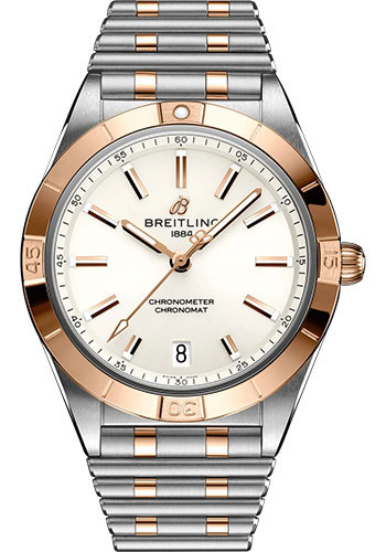 36.00 mm stainless steel and 18K red gold case, non screw-locked crown with two gaskets, unidirectional ratcheted bezel, white dial, Breitling 10 self-winding movement, approximately approx. 42 hours of power reserve, metal bracelet. Water resistant to 100 m (330 ft).