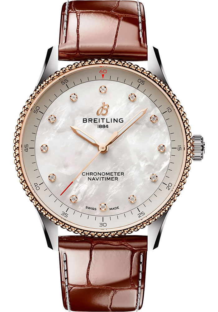 Breitling Style No: U77320E61A1P1 Breitling Navitimer Watch - 32mm Steel And Red Gold Case - Mother-Of-Pearl Dial - Brown Alligator Strap - Tang Buckle