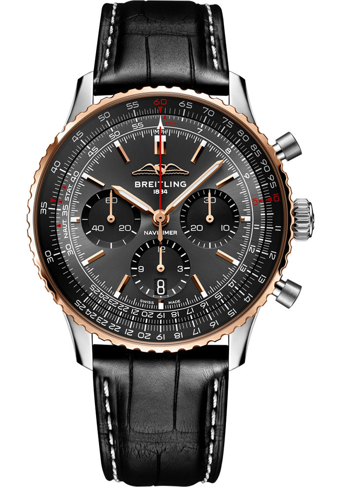 43.0 mm titanium case, 12.95 mm thick, 0 crown, bidirectional ratcheted bezel, orange dial, Breitling B70 (Manufacture MMT) thermocompensated SuperQuartz™ movement, titanium bracelet. Water resistant to 10 bars.
