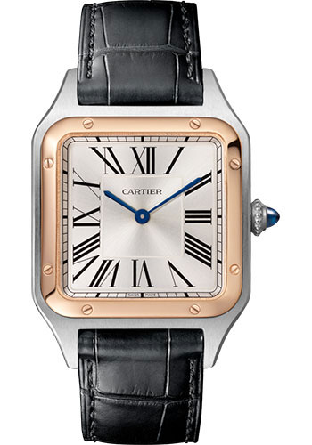 43.5 mm x 31.4 mm steel case, 7.30 mm thick, steel beaded crown set with a blue synthetic cabochon-shaped spinel, 18K rose gold bezel, sapphire crystal, satin-brushed silver dial with sunray effect, high autonomy quartz movement, black alligator leather strap, steel ardillon buckle. Water resistant to 3 bar (approx 30 meters/100 feet).
