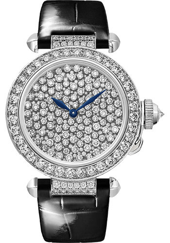Cartier Style No: HPI01450 Cartier Pasha de Cartier Watch - 35 mm White Gold Case - 228 Diamond Bezel - White Gold Diamond Dial - Black Leather Strap