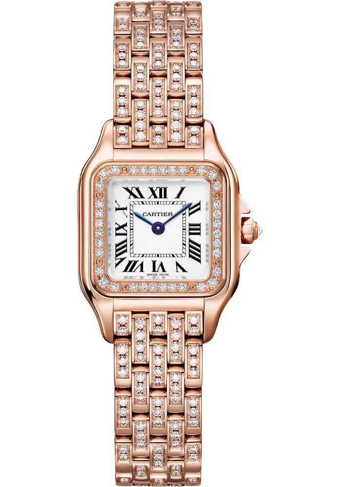 30.3 mm x 22.0 mm rose gold case set with 36 brilliant-cut diamonds, 6.05 mm thick, 18K rose gold octagonal crown set with a brilliant-cut diamond, silvered dial, quartz movement, 18K rose gold bracelet. Water resistant to 3 bar (approx 30 meters/100 feet).