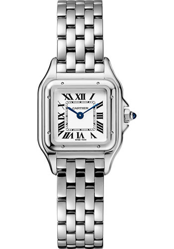 23 mm x 30 mm steel case, crown set with a synthetic blue spinel, set with brilliant-cut diamonds bezel set with...Panthère de Cartier watch, silvered dial, quartz movement, steel bracelet.