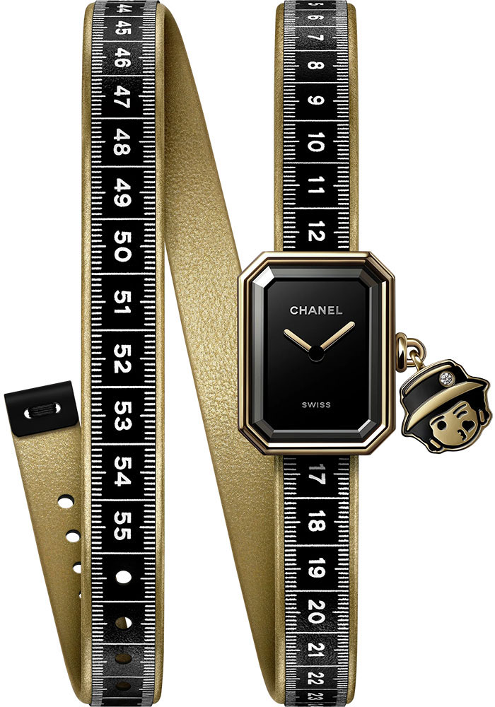 Chanel Première Ribbon Couture Quartz Watch - Yellow Gold Diamond Case - Black Dial - Printed Double Row Black Leather Strap