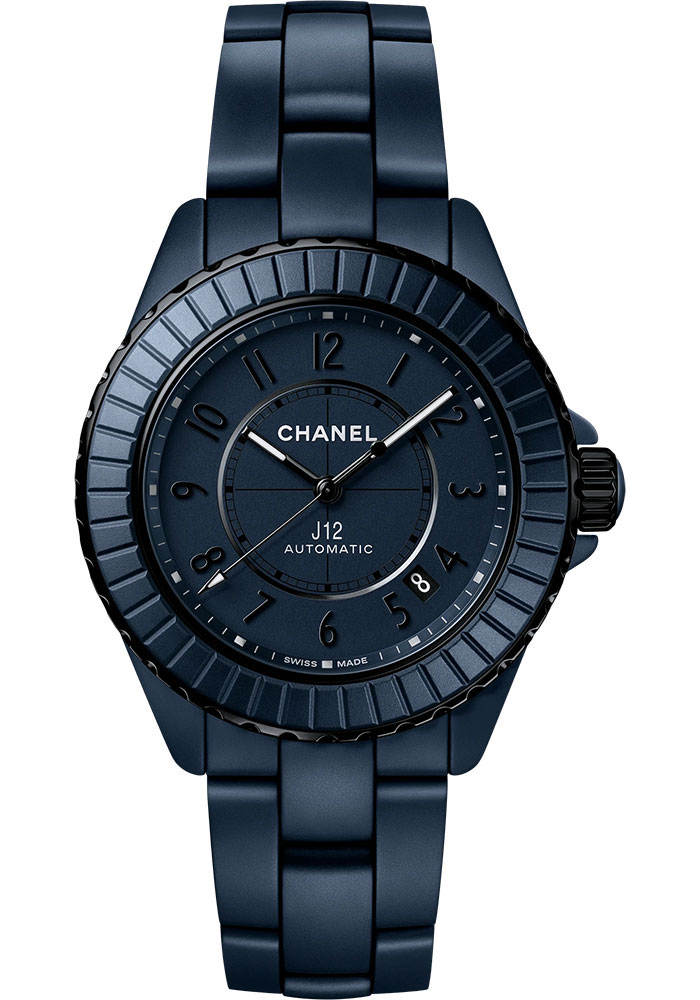 38 mm matte blue ceramic and black-coated steel case, 12.6 mm thick, black-coated steel screw-down crown with matte blue highly resistant ceramic cabochon, black-coated steel fixed bezel and matte blue highly resistant ceramic ring with baguette-cut pattern, matt blue varnished dial with black varnished indicators, caliber 12.1self-winding mechanical ≈ 70h movement, matte blue highly resistant ceramic bracelet, steel triple-folding buckle. Water resistant to 200 m.