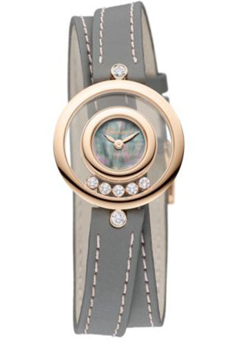 Chopard Happy Diamonds Icons Watch - 26.00 mm Rose Gold Diamond Case - Black Tahitian Mother-Of-Pearl Dial - Gray Strap