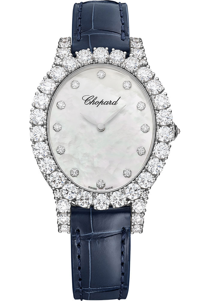 Chopard Style No: 139383-1223Chopard L'Heure Du Diamant Oval Watch - 40 mm White Gold Diamond Case - Textured Mother-Of-Pearl Dial
