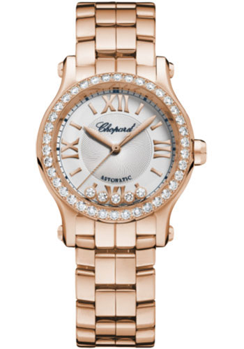 Chopard Style No: 274893-5014Chopard Happy Sport Round Watch - 30.00 mm Rose Gold Diamond Case - Silver Dial