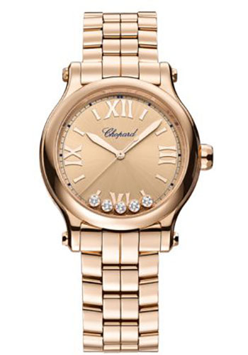 33.00 mm 18k rose gold case with diamonds, 10.84 mm thick, rose gold-toned dial with a sunburst satin-brushed finish and tone-on-tone hour-markers, self-winding mechanical movement with hours and minutes, seconds, approximately 42 hours of power reserve, folding buckle. Water resistant to 30 meters.