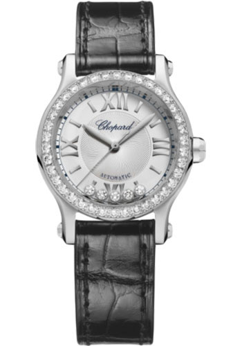 Chopard Style No: 278573-3013Chopard Happy Sport Round Watch - 30.00 mm Steel Diamond Case - Silver Dial - Black Strap