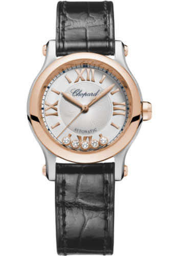 Chopard Style No: 278573-6013Chopard Happy Sport Round Watch - 30.00 mm Steel And Rose Gold And Steel Case - Silver Dial - Black Strap