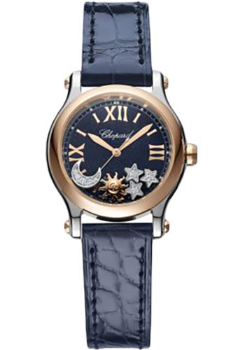 Chopard Style No: 278573-6027Chopard Happy Sport Sun, Moon And Stars Watch - 30.00 mm Steel And Rose Gold Diamond Case - Deep Blue Dial - Blue Strap