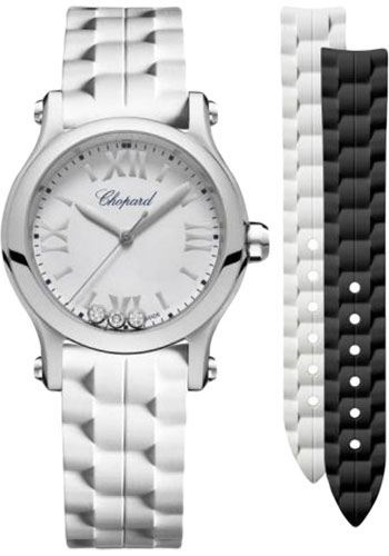 Chopard Style No: 278590-3001Chopard Happy Sport Round Watch - 30.00 mm Steel Case - Silver Dial - Black And White Rubber Strap