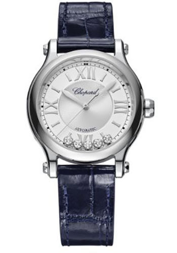 Chopard Style No: 278608-3001 Chopard Happy Sport Watch - 33.00 mm Steel Diamond Case - Silver Dial - Blue Strap