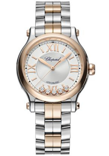 33.00 mm stainless steel and 18K rose gold case with diamonds, 10.84 mm thick, silver dial with guilloché center, self-winding mechanical movement with hours and minutes, seconds, approximately 42 hours of power reserve, folding buckle. Water resistant to 30 meters.