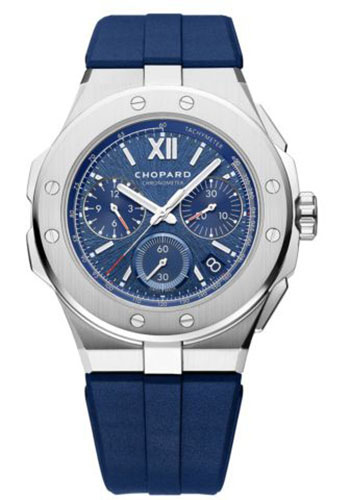 44.00 mm stainless steel case, 13.15 mm thick, aletsch blue dial with super-luminova, self-winding mechanical movement with hours and minutes, small seconds, jumping 30-minute counter, date, chronograph seconds hand, 12-hour counter, approximately 60 hours of power reserve, blue rubber strap, pin buckle. Water resistant to 100 meters.