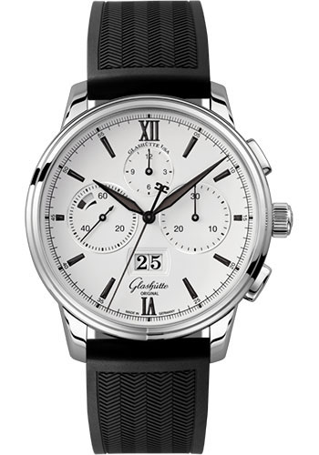 Glashutte Original Style No: 1-37-01-05-02-33Glashütte Original Senator Chronograph Panorama Date - Steel Case - White Dial - Black Rubber Strap - Folding Buckle