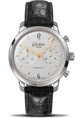 42.00 mm stainless steel case, 12.40 mm thick, galvanized silver dial with markers milled, printed scales, hour markers with luminous spots, Calibre 39-34 automatic movement with hour and minute, chronograph with stop-second, small second, 30 minute counter, approximately 40 h ± 5 % of power reserve, black louisiana alligator strap, pin buckle. Water resistant to 3 bar.