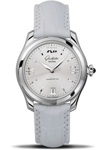 36.00 mm stainless steel case, 10.20 mm thick, sapphire crystal back, mother-of-pearl blue dial with 8 brilliant-cut diamonds (approx. 0.04 ct, tw vvs), indices applied, black date on white background, Calibre 39-22 automatic movement with hour and minute, second, date, approximately 40 h ± 5 % of power reserve, blue louisiana alligator leather strap, folding buckle. Water resistant to 5 bar.