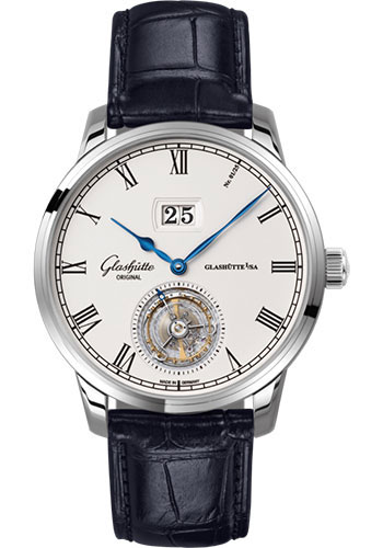 Glashütte Original Senator Tourbillon - White Gold Case - Silver Dial - Blue Alligator Strap - Folding Buckle