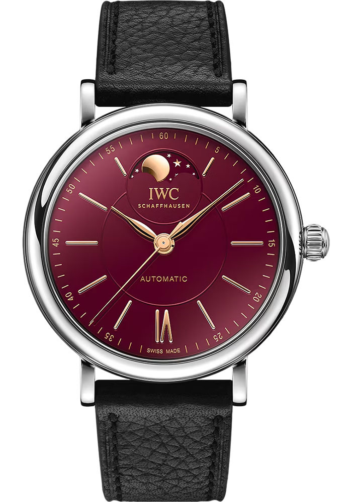 IWC Portofino Automatic Moon Phase 37 Year of the Snake Watch - Stainless Steel Case - Red Dial - Black Calfskin Strap