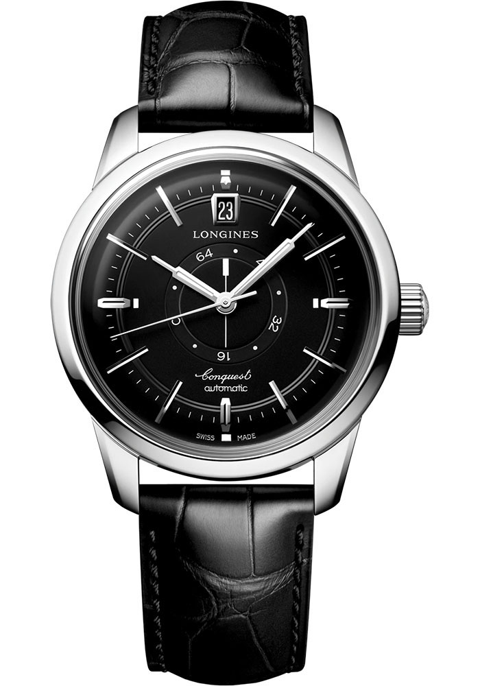 38.00 mm stainless steel case, 12.30 mm thick, transparent sapphire crystal back, scratch-resistant sapphire crystal with anti-reflective coating, black dial with applied indexes, caliber L896 automatic movement with hours, minutes, seconds, date and central power reserve indicator, approximately 72 hours of power reserve, black alligator strap. Water resistant to 5 bar.
