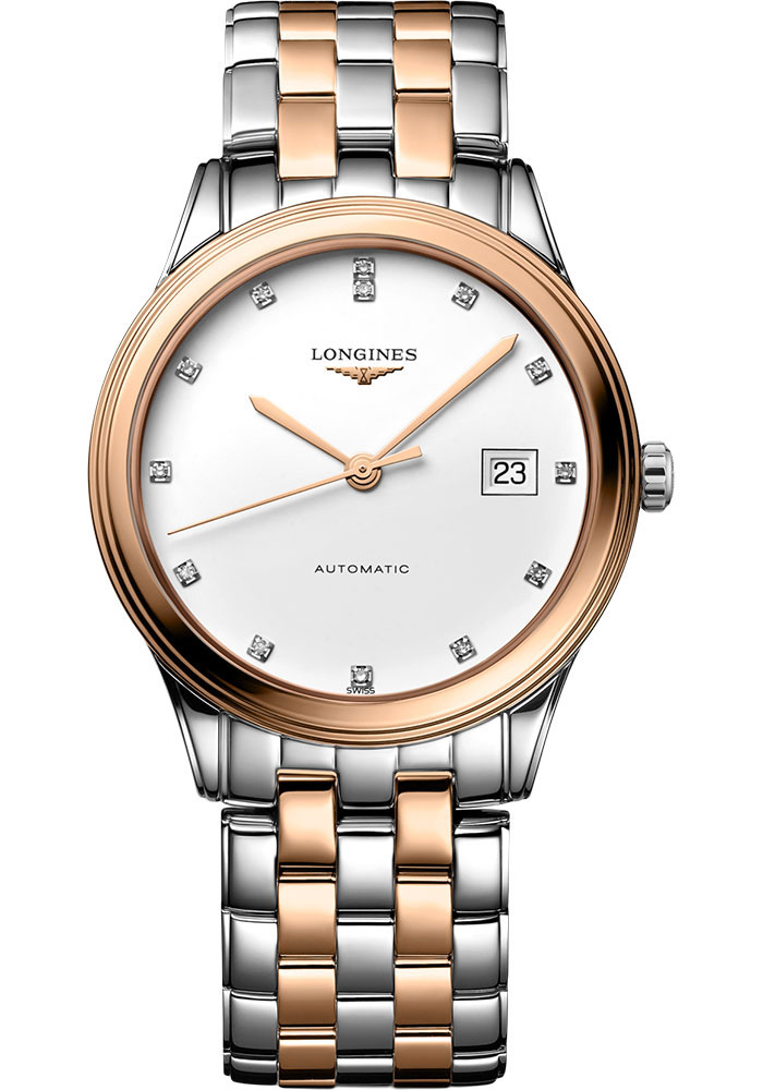 38.50 mm stainless steel and red PVD coating case, 8.20 mm thick, transparent sapphire crystal back, scratch-resistant sapphire crystal with anti-reflective coating, white matt dial with diamond indexes set with 13 Top Wesselton VS-SI diamonds (~0.059 cts), caliber L888 automatic movement with hours, minutes, seconds and date, approximately 72 hours of power reserve, stainless steel and red PVD coating bracelet. Water resistant to 3 bar.
