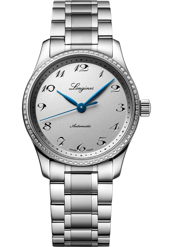 34.00 mm stainless steel case set with 68 Top Wesselton IF-VVS diamonds(~0.571 cts), 9.20 mm thick, transparent sapphire crystal back, scratch-resistant sapphire crystal with anti-reflective coating, silver dial with engraved Arabic numerals, caliber L888 automatic movement with hours, minutes, seconds, approximately 72 hours of power reserve, stainless steel bracelet. Water resistant to 3 bar.