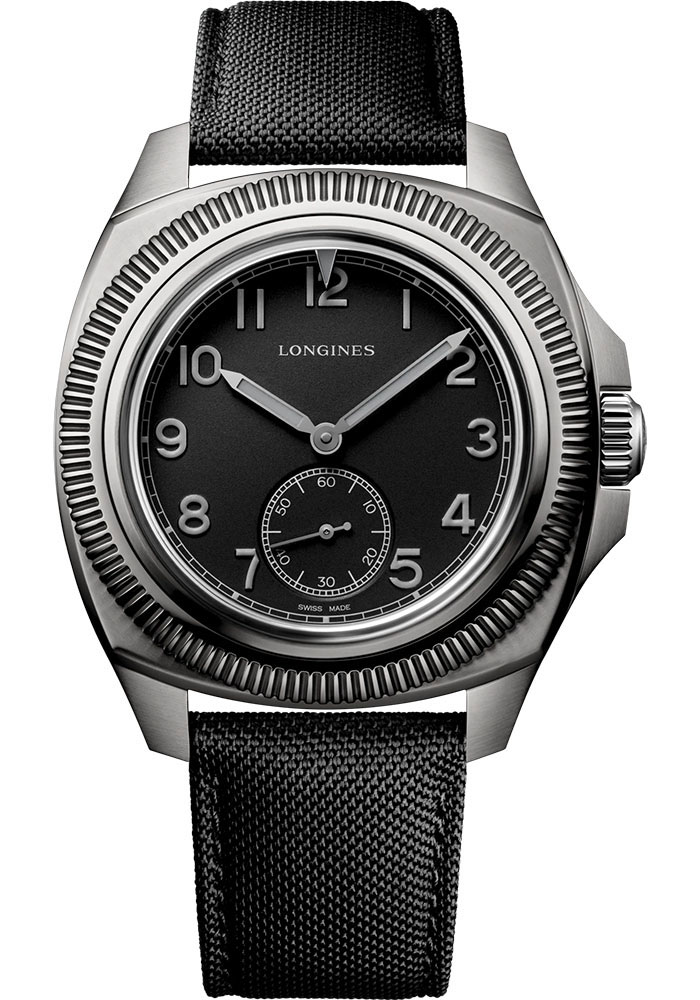 43.00 mm titanium case, 13.30 mm thick, screw-in crown, bi-directional rotating bezel, scratch-resistant sapphire crystal with anti-reflective coating, black matt dial with engraved Arabic numerals, caliber L893 automatic movement with hours, minutes, small seconds at 6 o'clock, approximately 72 hours of power reserve, black nylon strap. Water resistant to 10 bar.