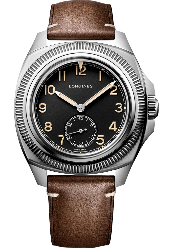 43.00 mm stainless steel case, 13.30 mm thick, screw-in crown, bi-directional rotating bezel, scratch-resistant sapphire crystal with anti-reflective coating, black matt dial with embossed indexes and Arabic numerals, caliber L893 automatic movement with hours, minutes, small seconds at 6 o'clock, approximately 72 hours of power reserve, brown leather strap. Water resistant to 10 bar.