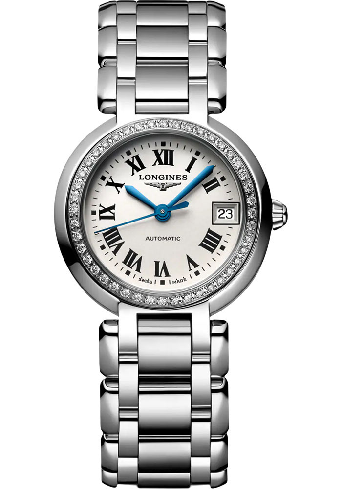 Longines PrimaLuna Automatic Watch - 26.5 mm Steel Diamond Case - Silver Roman Dial - Bracelet