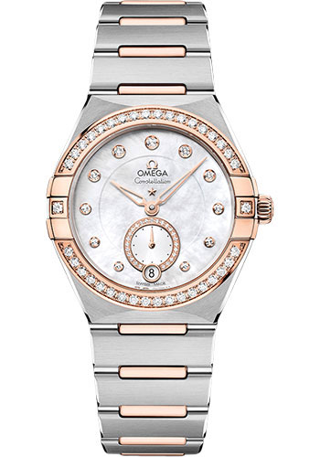 34 mm steel and sedna gold case, transparent back, diamond-paved bezel, domed scratch-resistant sapphire crystal with anti-reflective treatment on both sides, white pearled mother-of-pearl dial, Calibre 8802 self-winding chronometer movement with small seconds and date. Water resistant to 50 metres (167 feet).