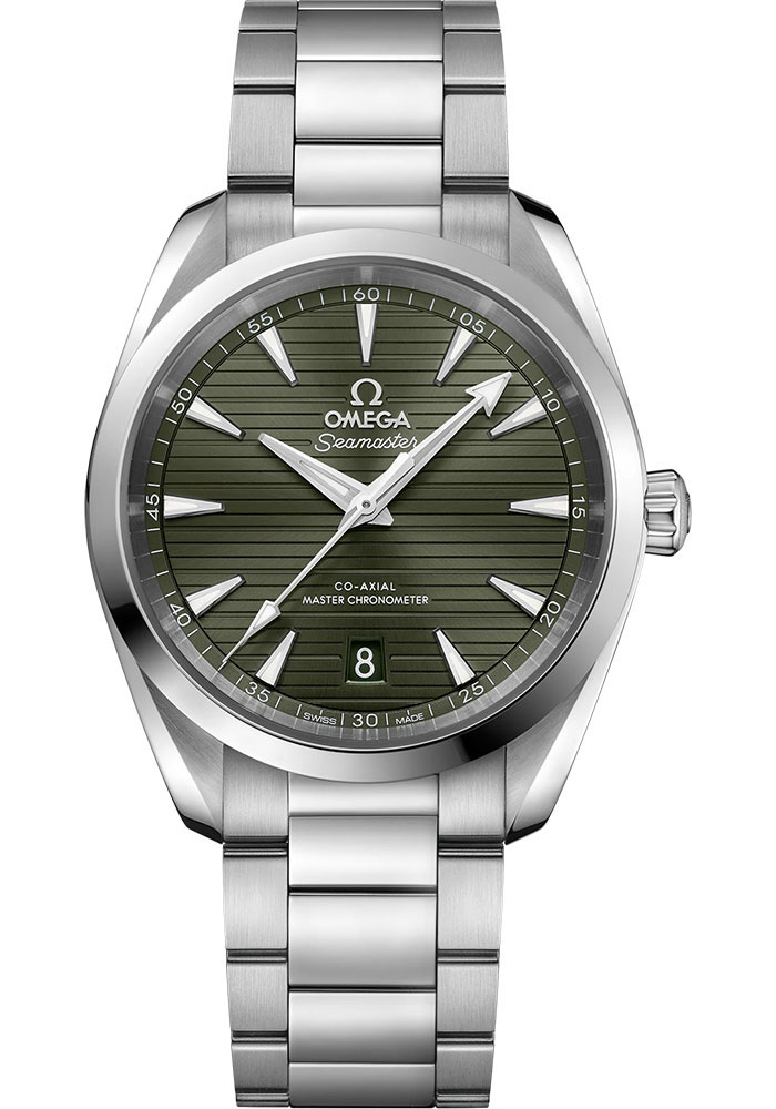 38 mm steel case with anti-magnetic protection, domed scratch-resistant sapphire crystal with anti-reflective treatment on both sides, green PVD dial, Omega 8800 self winding chronometer movement, approximately 55 hours of power reserve, brushed bracelet with OMEGA’s patented screw. Water resistant to 150 metres (500 feet).