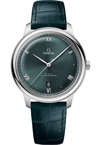 40 mm steel case, transparent back, domed scratch-resistant sapphire crystal with anti-reflective treatment inside, domed pvd pine green dial with a sun-brushed finish, Omega 8800 self-winding chronometer movement with date, pine green leather strap. Water resistant to 30 metres (100 feet).