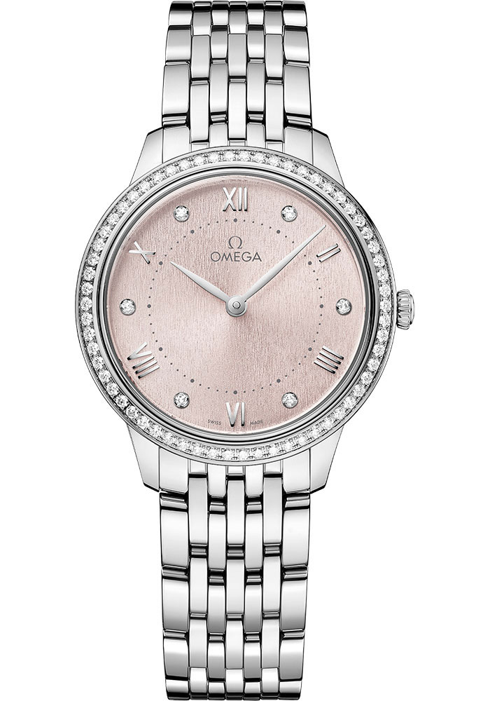 Omega Style No: 434.15.30.60.52.001 Omega De Ville Prestige - 30 mm Steel Case - Diamond Bezel - PVD Rose Silvery Pink - Silver Dial - Stainless Steel Bracelet