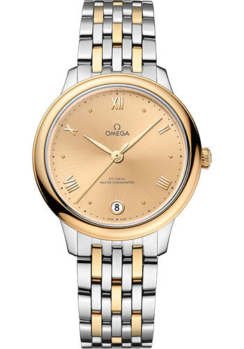 Omega Style No: 434.20.34.20.08.001 Omega De Ville Prestige Co-Axial Master Chronometer - 34 mm Steel And Yellow Gold Case - PVD Moonshine Gold Yellow Dial - Stainless Steel And Yellow Gold Bracelet