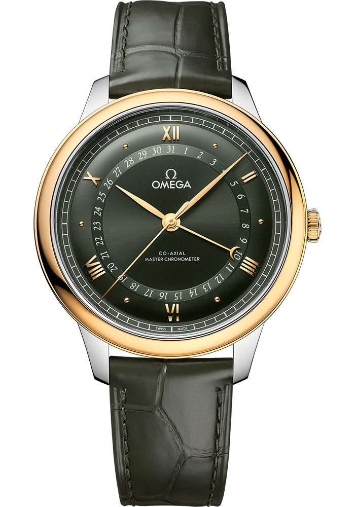 Omega Style No: 434.23.42.22.10.001 Omega De Ville Prestige - 42 mm Steel And Yellow Gold Case - PVD Green Dial - Green Leather Strap