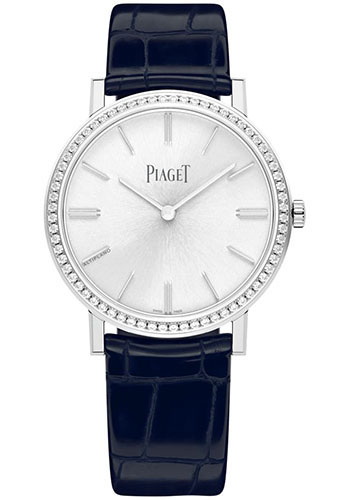 35 mm 18K white gold case set with 76 brilliant-cut diamonds (approx. 0.49 ct), 8.07 mm thick, diamond-set bezel, silvered dial, 501P automatic movement with hours, minutes, approximately 43 hours of power reserve, blue alligator strap, ardillon buckle. Water resistant to 03 ATM.