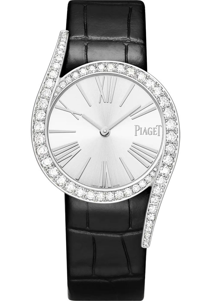 32 mm white gold case set with 62 brilliant-cut diamonds (approx. 1.65 cts), 8.91 mm thick, white dial, US self-winding movement with minutes, hours, approximately 40 hours of power reserve, black alligator strap, rhodium-finished gold ardillon buckle. Water resistant to 3 bar.