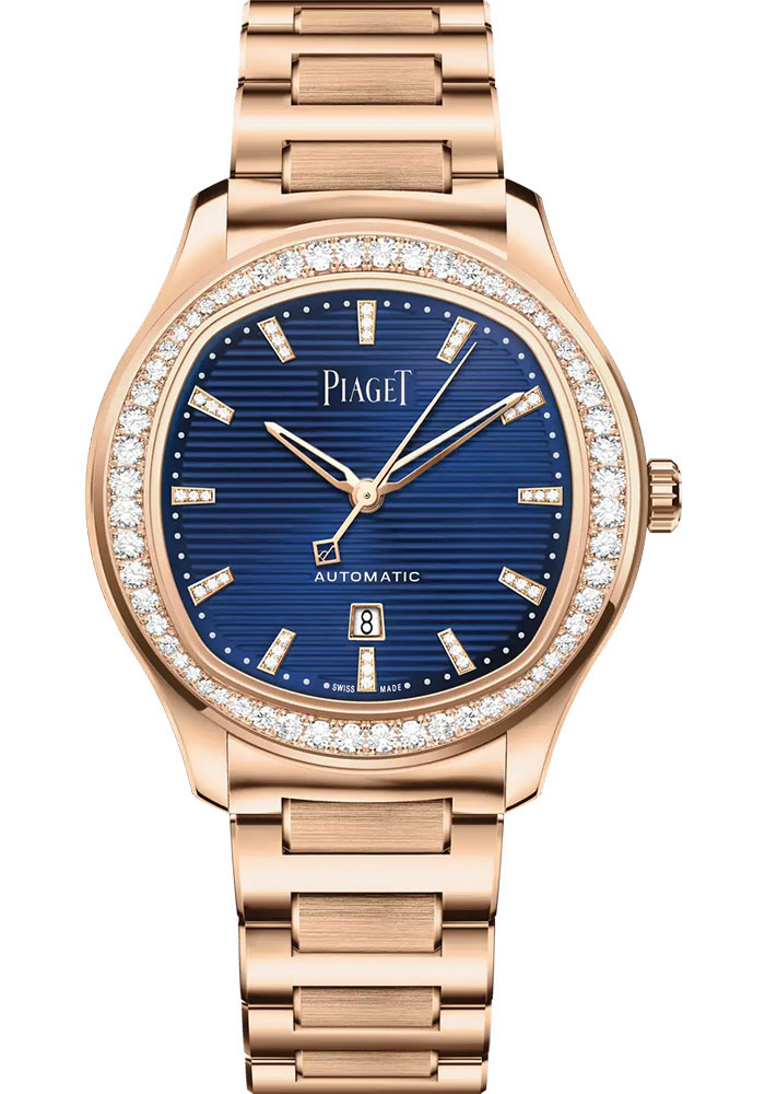 Piaget Style No: G0A49029Piaget Polo Date Watch - 36 mm Rose Gold Diamond Case - Blue Dial - Rose Strap