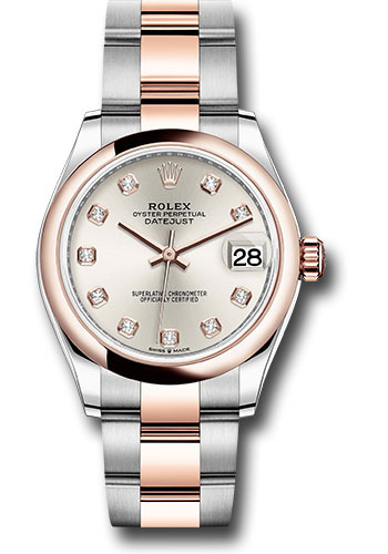 31mm Everose Rolesor case comprised of Oystersteel and 18K Everose gold, screw-down back, screw-down crown with twinlock double waterproofness system, 18K Everose gold domed bezel, scratch-resistant sapphire crystal with cyclops lens over the date, silver dial, diamond hour markers, Rolex calibre 2236 perpetual self-winding movement with date at 3 o'clock, approximately 55 hours of power reserve, Eversose Rolesor Oyster bracelet made from a combination of steel and 18K everose gold with flat three-piece links, folding Oysterclasp buckle with Easylink 5mm comfort extension link. Waterproof to 100 meters.