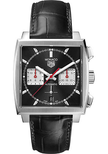 39 mm fine-brushed and polished steel case, 15.21 mm thick, sapphire back, steel crown, steel bezel, black dial, Calibre HEUER02 automatic chronograph movement with hours, minutes, seconds, date, approximately 80 hours of power reserve, alligator leather strap, folding buckle. Water resistant to 100 m.